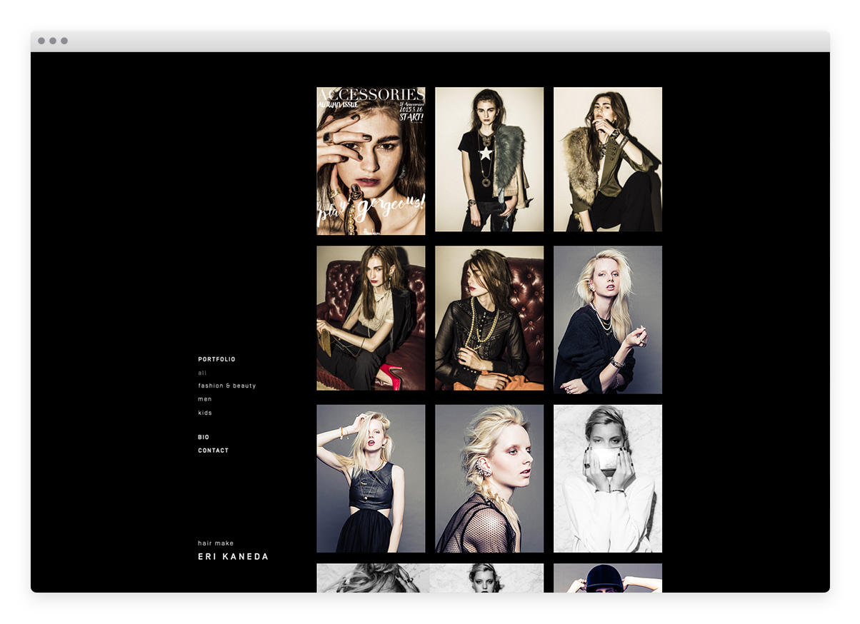 ヘア&メイクアップアーティスト、金田英里さんのポートフォリオサイトのアートディレクション・デザインを担当しました。