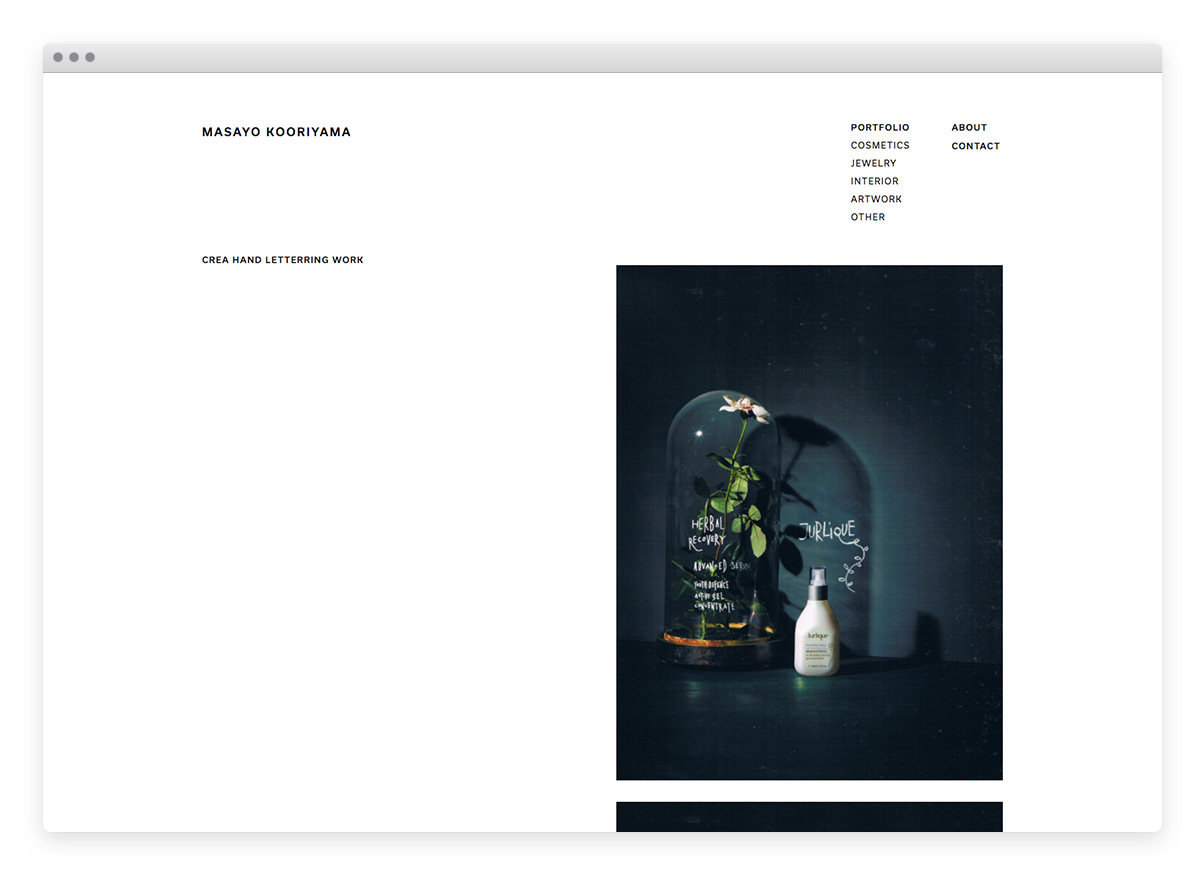 Portfolio website for Masayo Kooriyama, a Tokyo-based stylist for interiors and still life.
