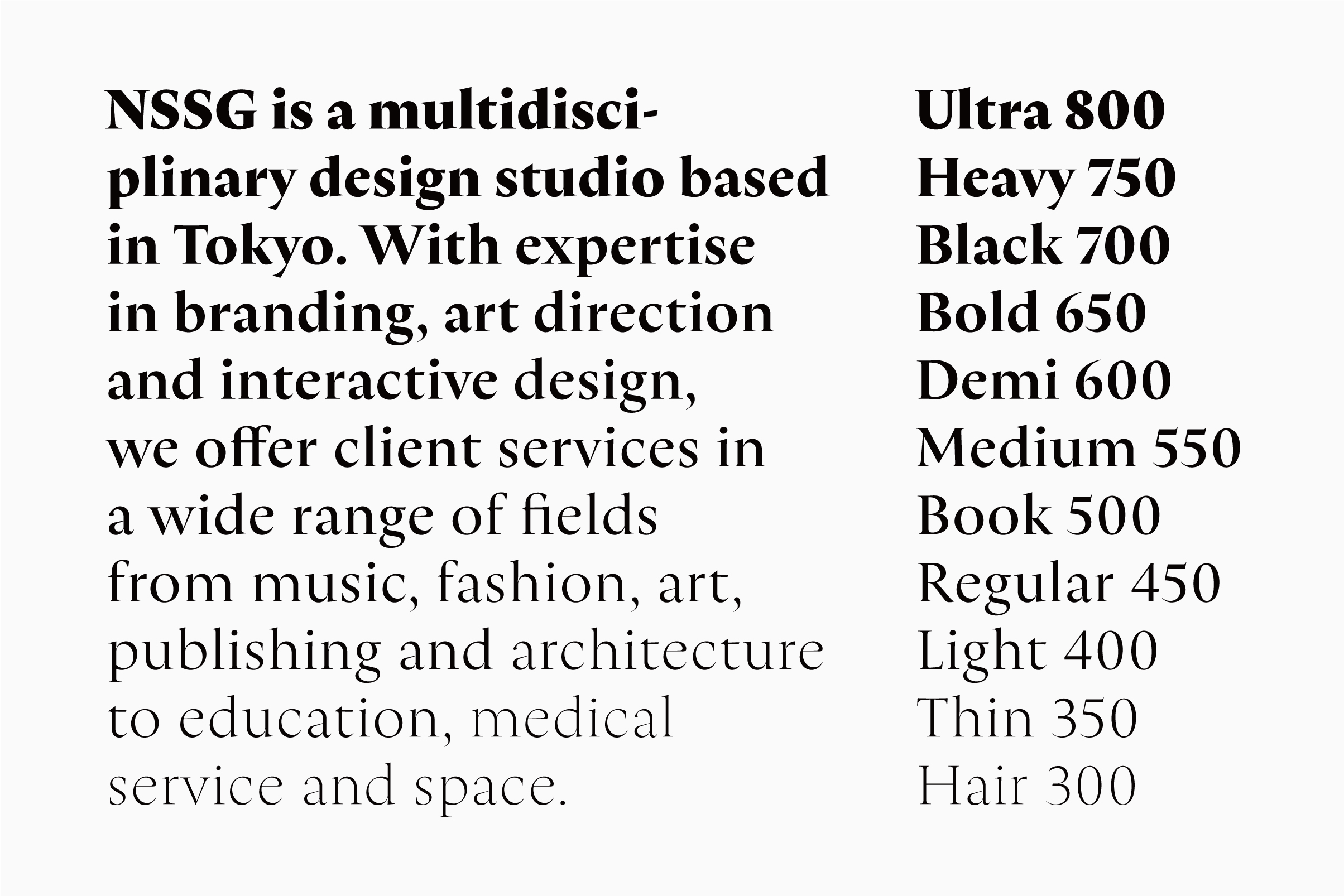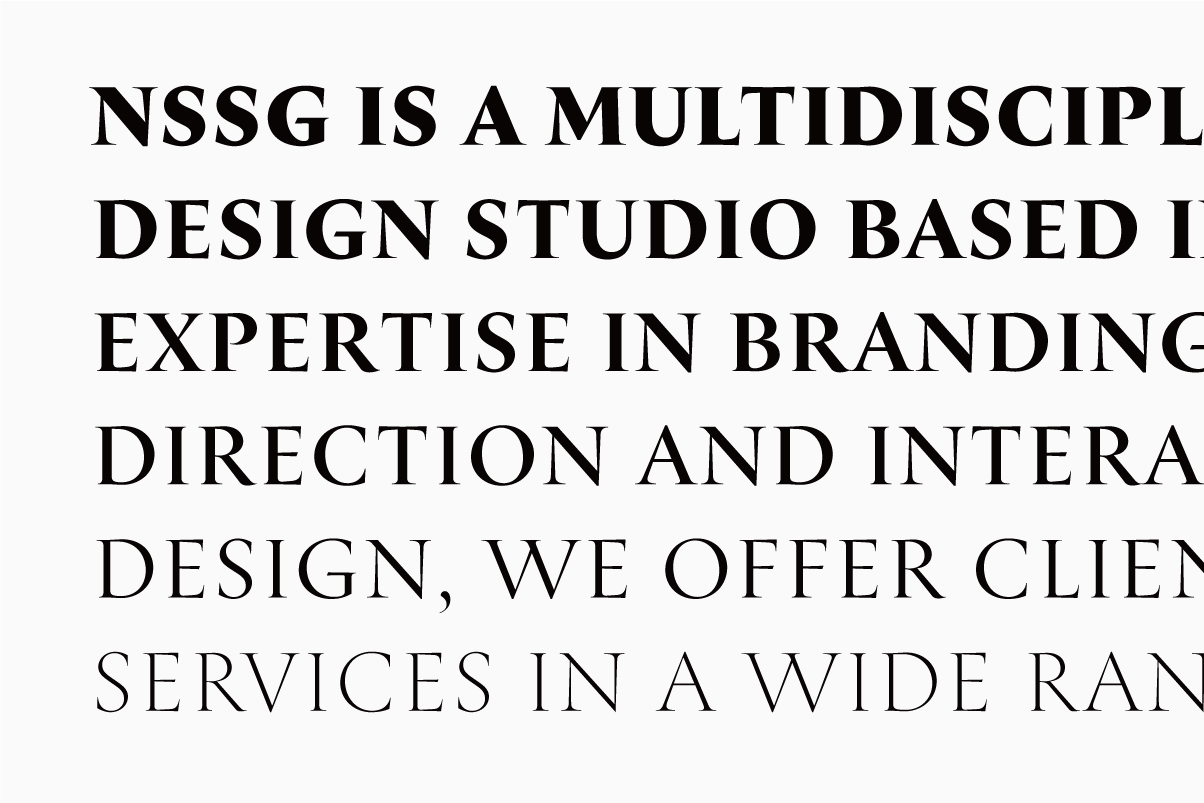 NSSG Serif is a custom typefaces for our own studio coming in 11 weights.