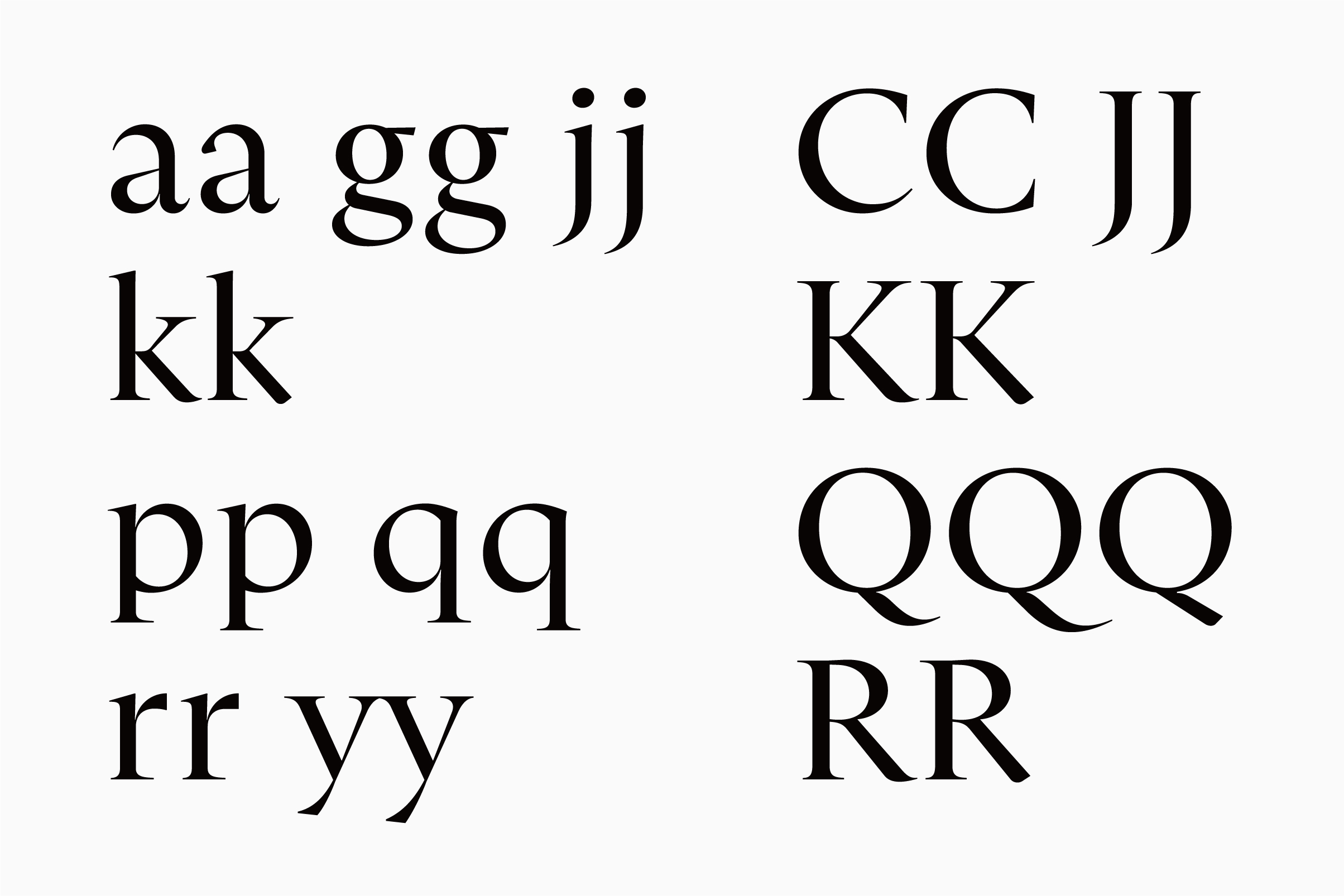 NSSGのブランディングやクライアントとのコミュニケーションのために制作した新しいオリジナルのセリフ書体です。ベーシックに使用できる汎用性の高いものをめざして歴史的なモデルを参照し、デザインしています。以前からスタジオで制作し使用していたサンセリフ書体(NSSG Grotesk)は今後も運用していく予定ですが、自社のプロジェクトを進めていく中で、セリフ体を必要とする場面がこれまで幾度かあったことから、新しく書体を制作することといたしました。