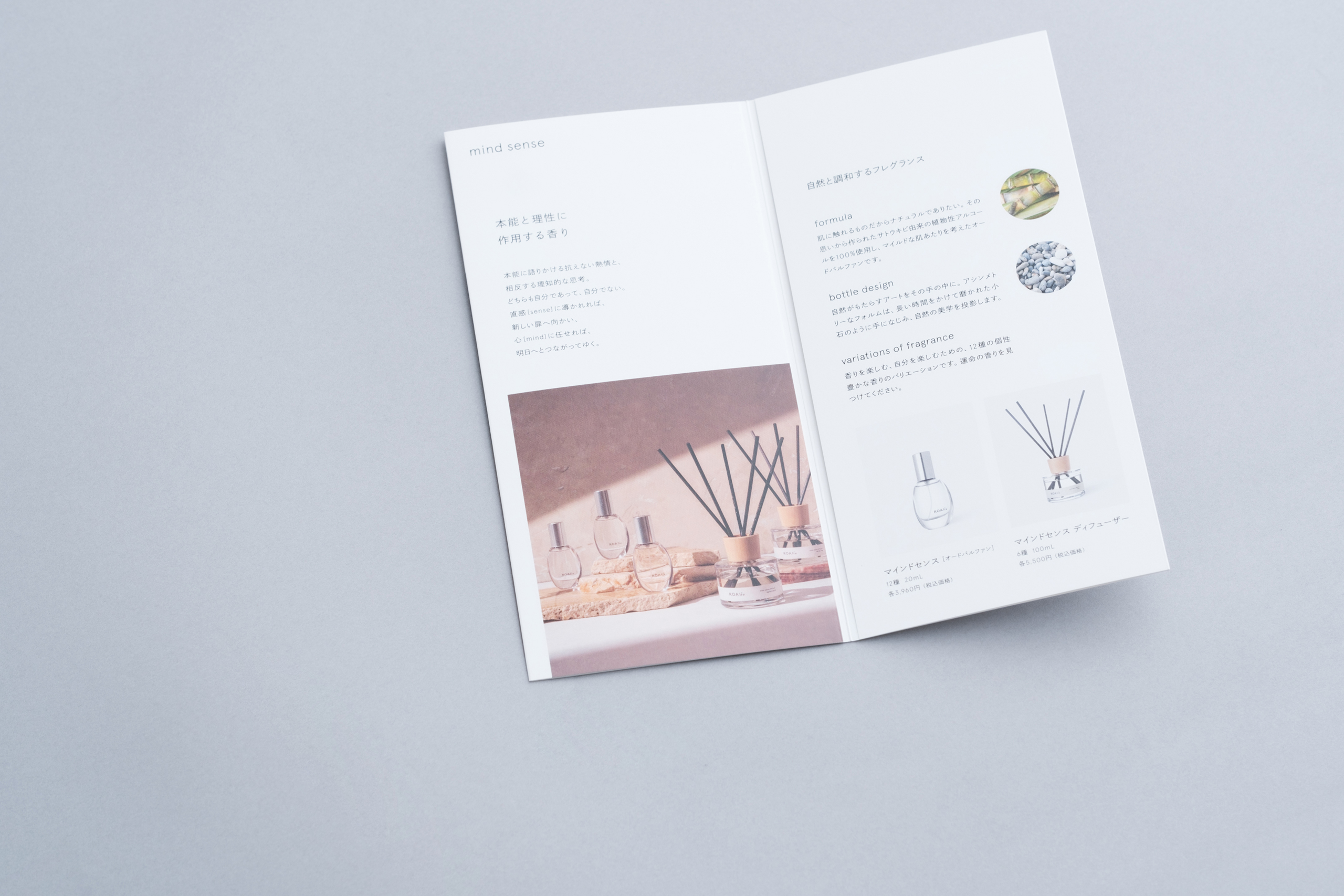 リニューアルしたフレグランスのシリーズ、mind senseのキービジュアル、ムービーディレクション、パッケージ、パンフレットなどのデザインを担当いたしました。